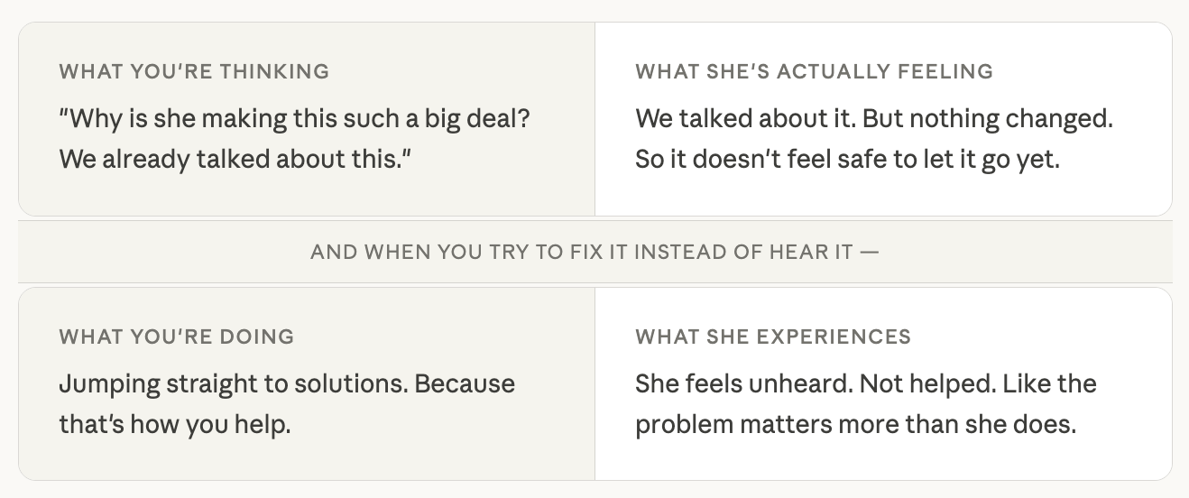 But to her, it feels like you’re ignoring what she felt